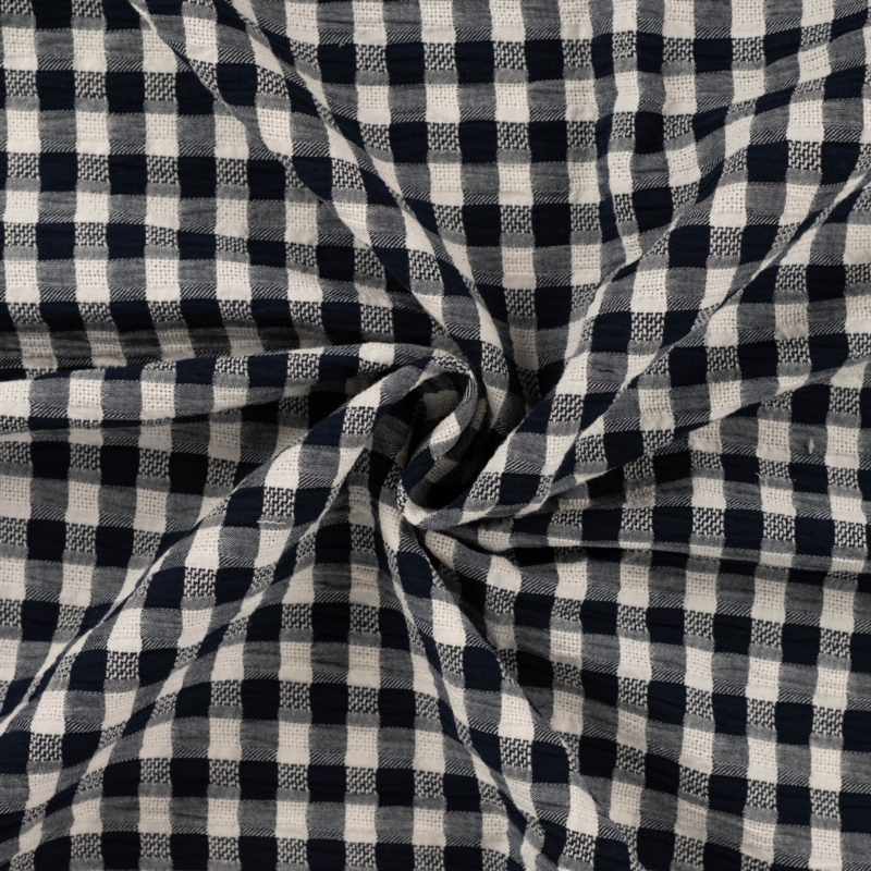 Gestructureerde katoen ruit dark navy
